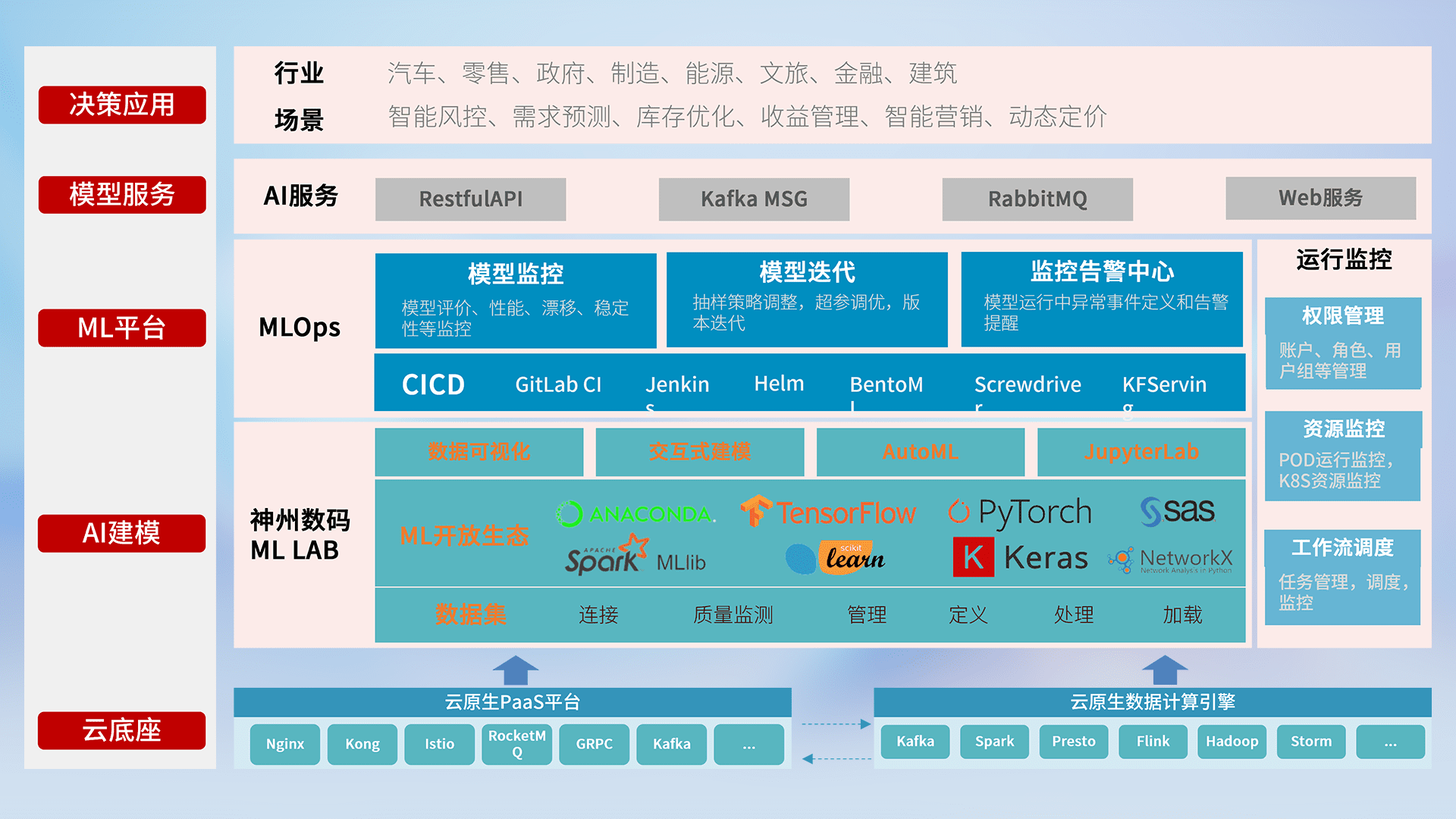 数据+模型双引擎驱动,,,,面向智能服务场景,,,快速灵活利用AI技术,,支持业务决策,,助力企业智能化转型破局。。